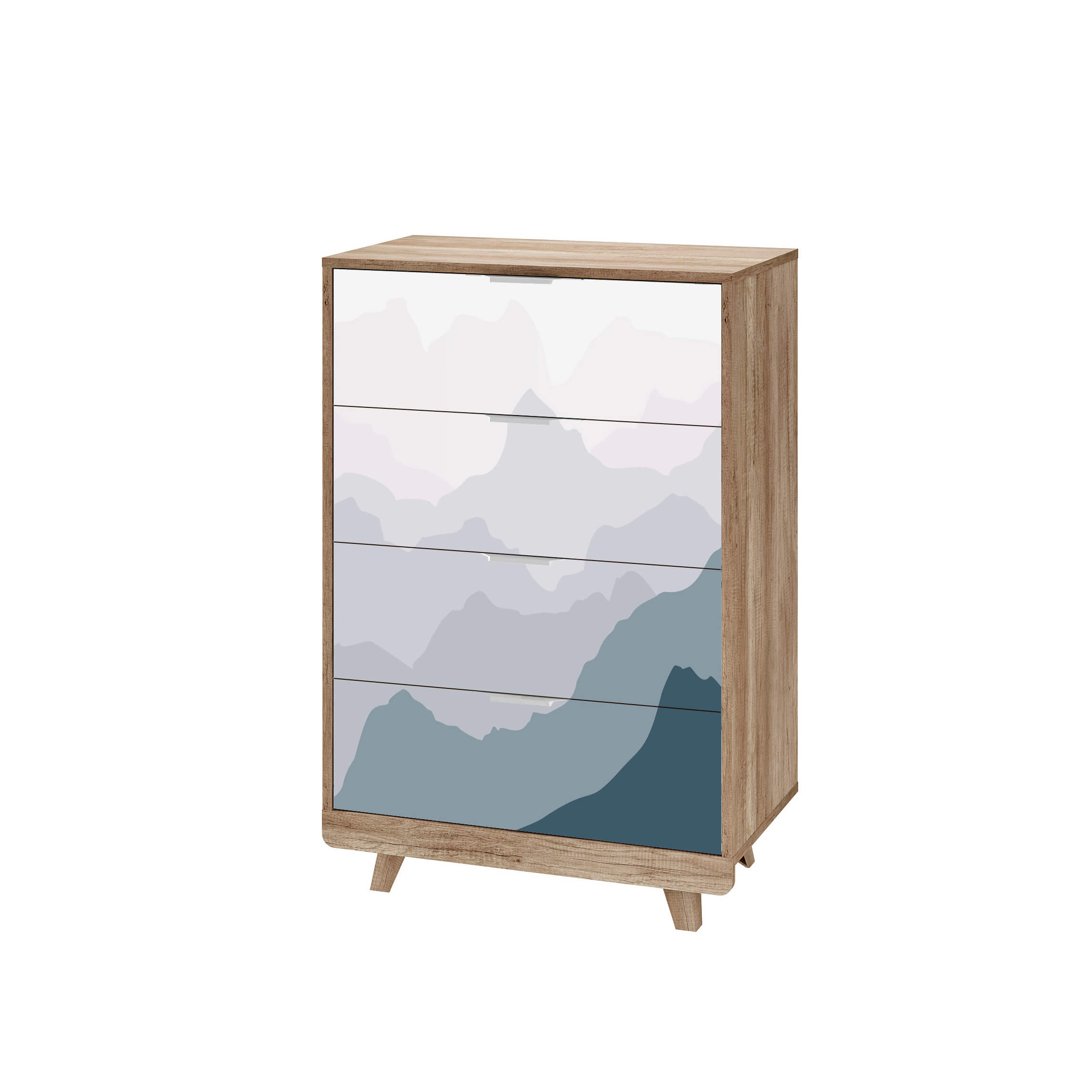 Особый шарм комодам «Мегаполис» придают трендовые цветовые решения фасадов, которые идеально вписываются практически в любой стиль. Оригинальная фрезеровка и эксклюзивная фотопечать выглядит очень эффектно и эксклюзивно. Пыли и грязи на таких поверхностях совершенно не видно, а это огромный плюс для домохозяек! Комод (КМ-02) состоит из четырёх выдвижных ящиков на шариковых направляющих для хранения одежды, пастельного белья и других хозяйственных аксессуаров. Цветовая палитра фасадов комодов впервые разбавлена фасадами с качественной фотопечатью.