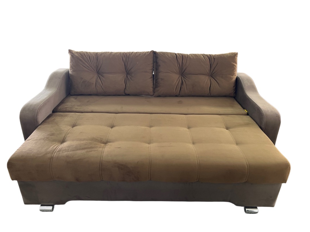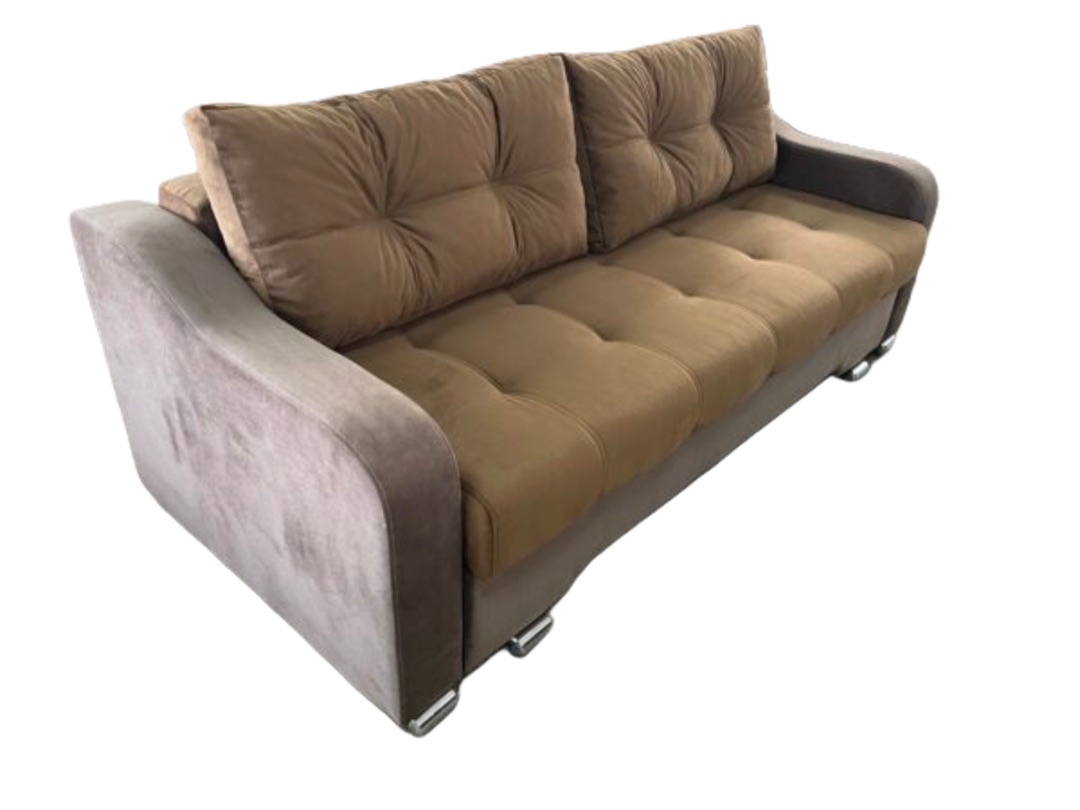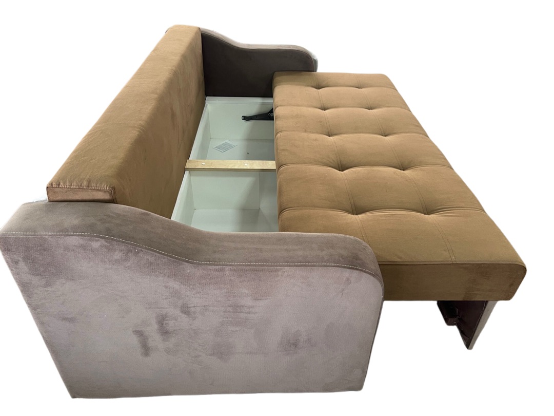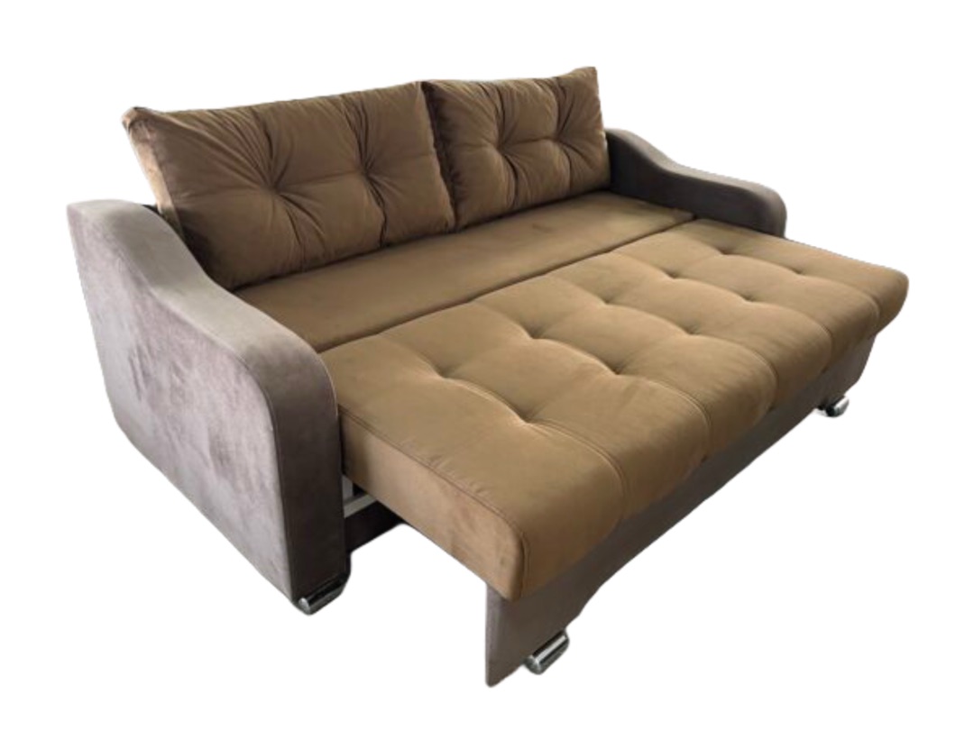 Диван «Мадрид» — диван с подлокотниками. Современный, удобный, комфортный. Оснащен механизмом трансформации Тик-так — надежный и легкий в трансформации, он быстро превращает диван в полноценное и что особенно важно, высокое спальное место, подходит для ежедневного использования. Оборудован вместительным ящиком для постельных принадлежностей.
