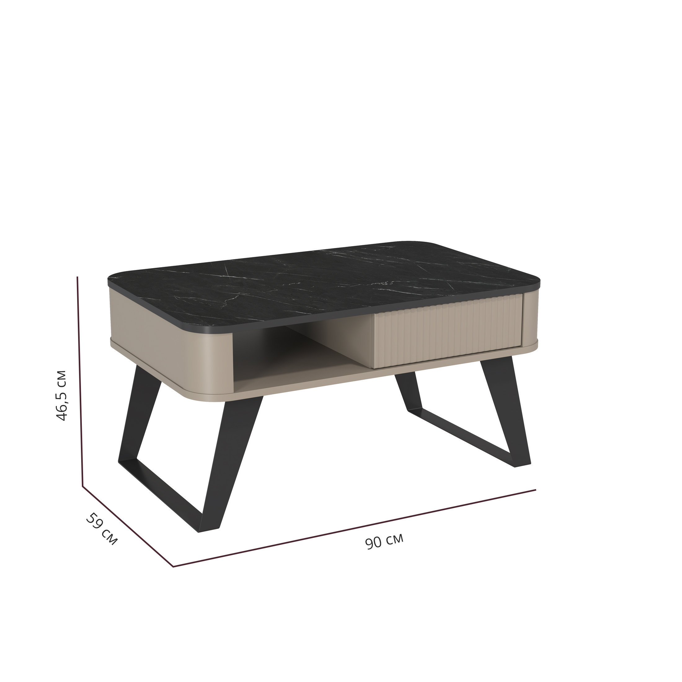Стол журнальный 76.10 Фиделия (серый камень / мрамор черный / ДВПО: серый камень / ПВХ серый камень / профиль: Masa Decor серый камень) от российской фабрики Олмеко отлично подойдет для многих квартир. Многолетний опыт в производстве позволил создать стильную, комфортную и доступную мебель с долгим сроком службы.