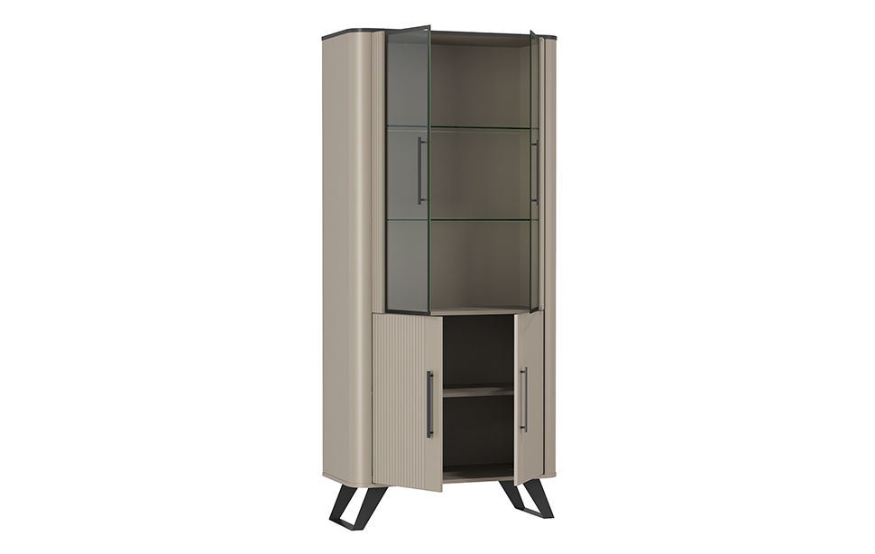Шкаф витрина 76.01 Фиделия (серый камень / мрамор черный / ДВПО: серый камень / ПВХ серый камень / профиль: Masa Decor серый камень) от российской фабрики Олмеко отлично подойдет для многих квартир. Многолетний опыт в производстве позволил создать стильную, комфортную и доступную мебель с долгим сроком службы.