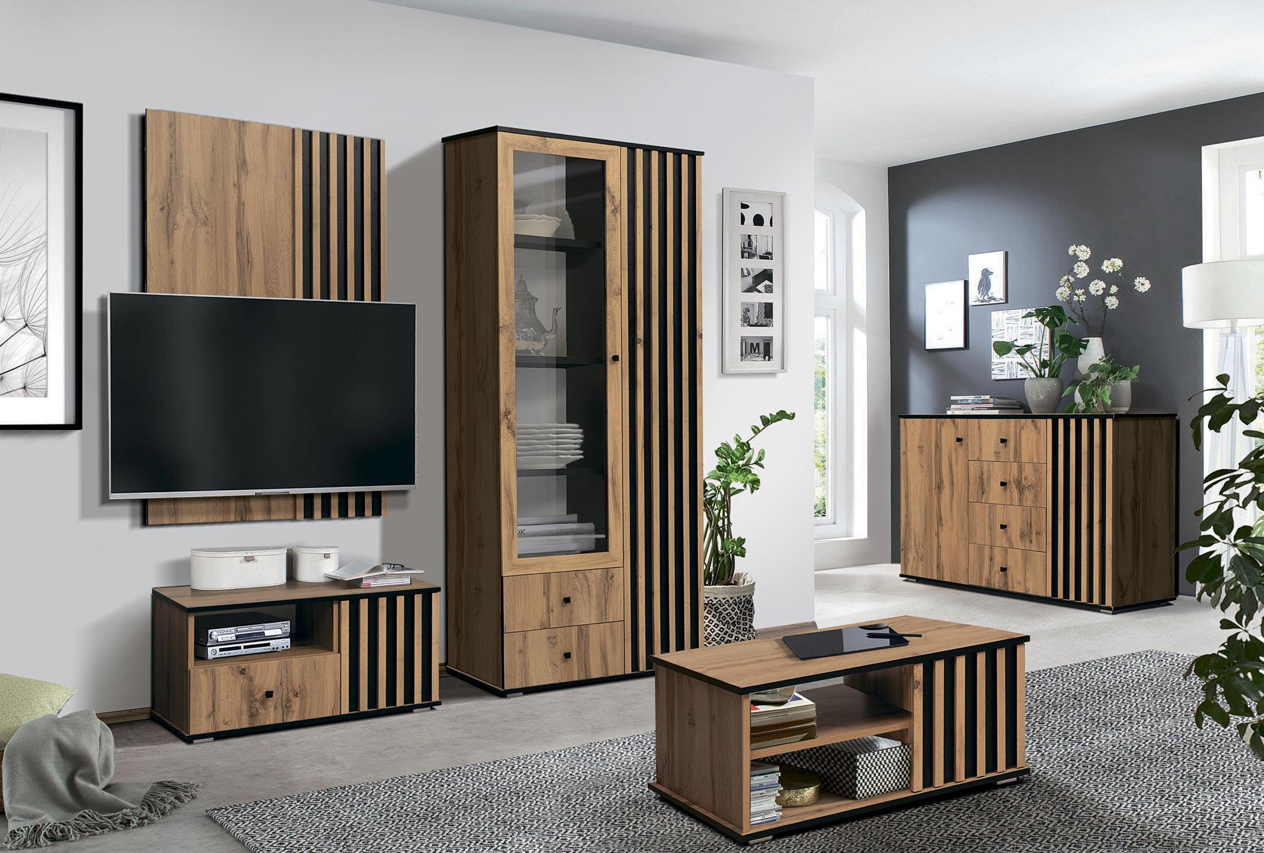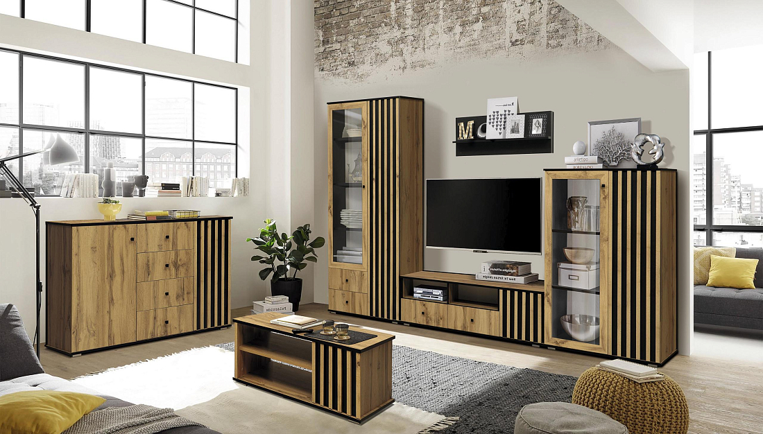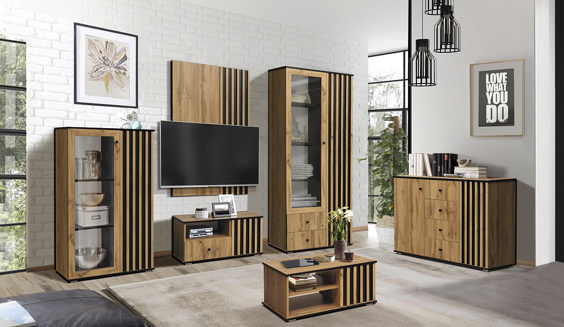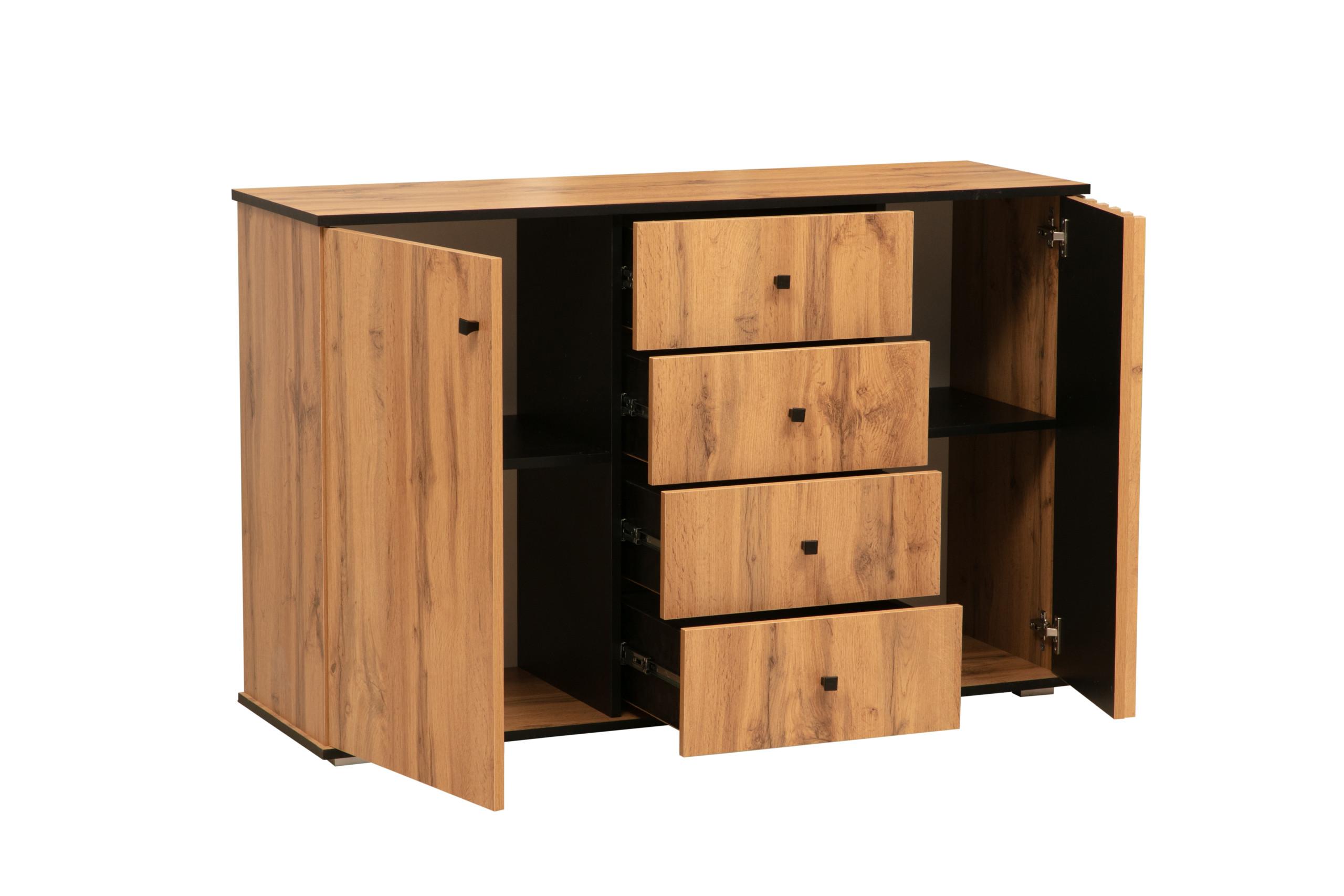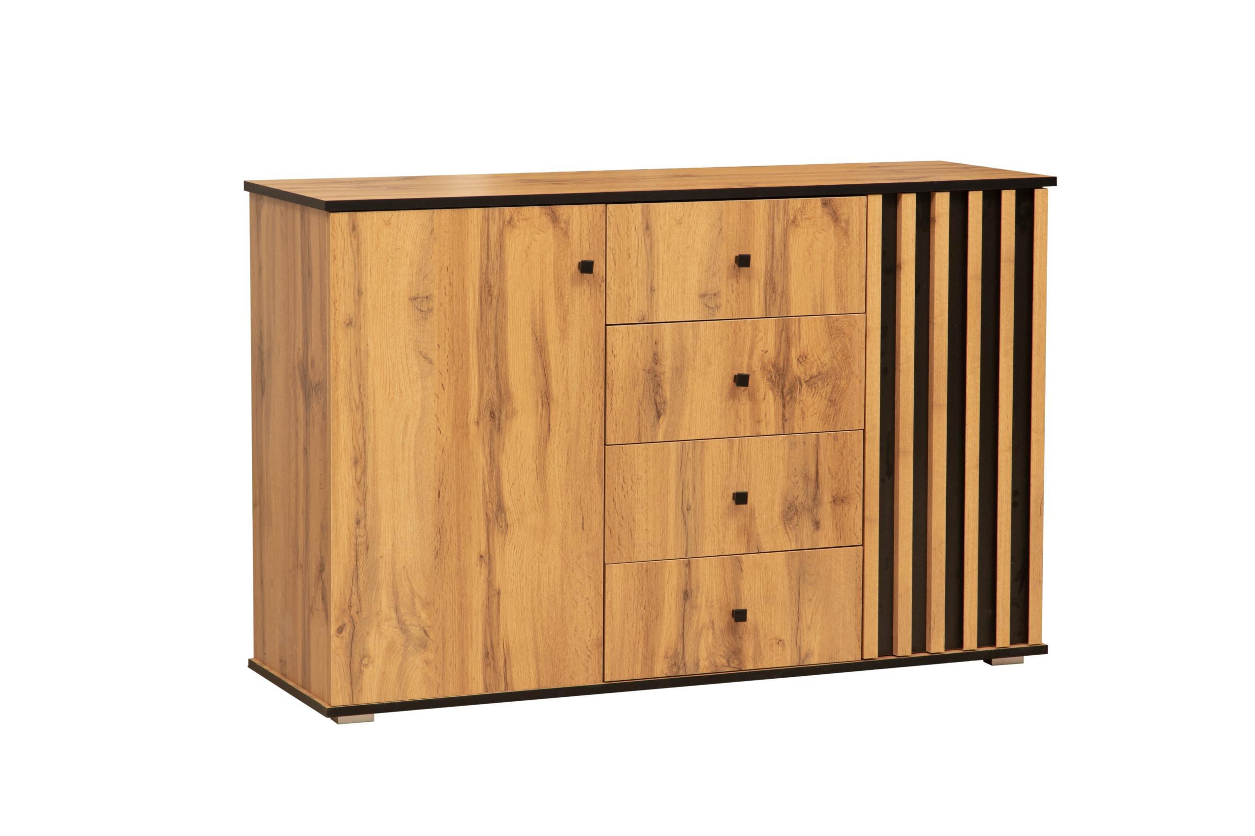 Комод 51.04 Либерти (опора h=20мм) (дуб вотан / черный / профиль: Masa Decor дуб вотан) от известного производителя отлично подойдет для многих квартир. Большой опыт в производстве позволил создать красивую, удобную и недорогую мебель которая прослужит вам долго.