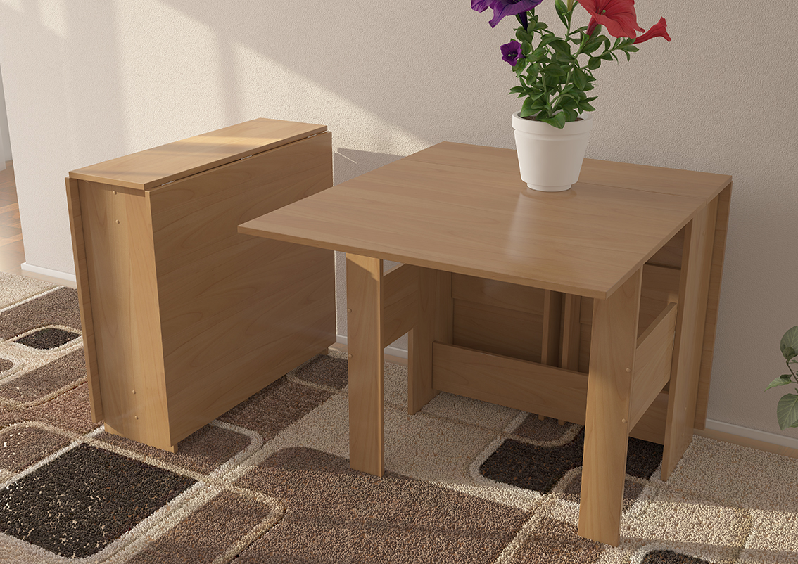 Стол-книжка №1 – прекрасное подспорье во время встречи гостей. Он прост в использовании, не занимает много места и устойчив в разборном состоянии.